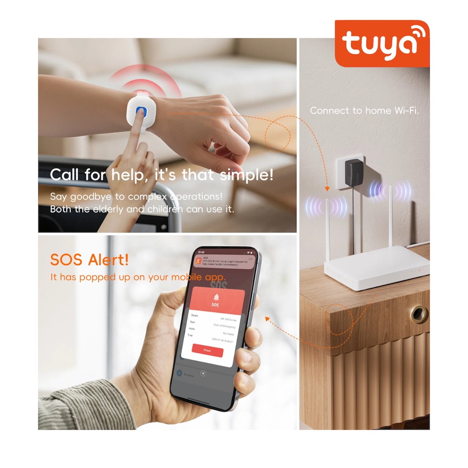 AIO CF103 Tuya Smart WiFi Safety SOS Bracelet Emergency Alert /SOS Watch Elderly Fall Alarm /SOS Call Panic Button Waterproof Design (White/Black)